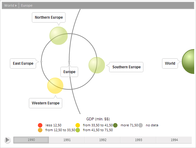 To execute the example the HTML page must contain the BubbleTree component named «bubbleTree» (see «The BubbleTree component creation example» ). Get an element by ID, get its parent and change orientation of its label. Scroll the scene to the obtained item. Get chart branch children and set a new opacity value for these elements: