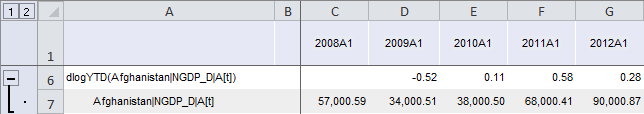 After the function is applied, a series with the name of the dlog<Period>(<Series_Name>[t])(<Series_Name>) type and containing calculation results is added to the data table for each of the selected series. For example: