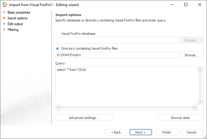 Select the required file from a Visual FoxPro database or from a directory containing Visual FoxPro files.