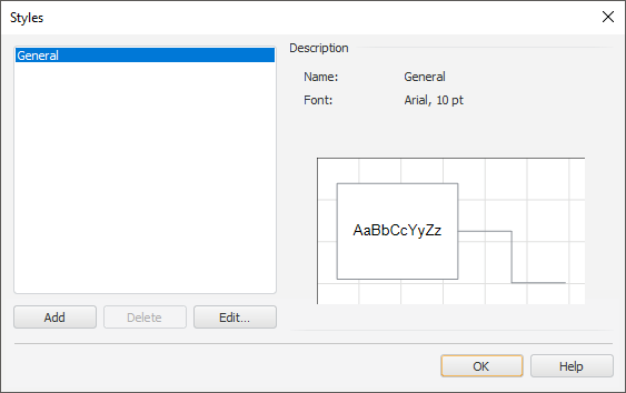 Create a style. Click the Add button. The Style Parameters dialog box opens where parameters of the created style can be edited. This dialog box has the same tabs as the object formatting dialog box.
