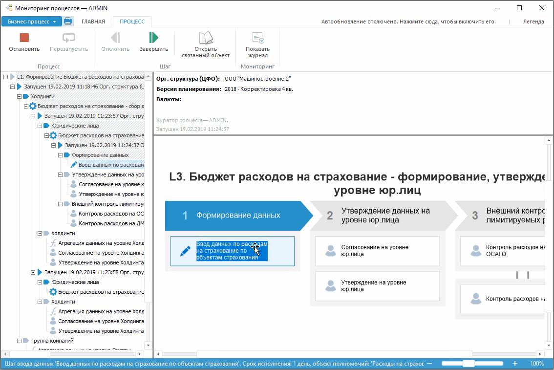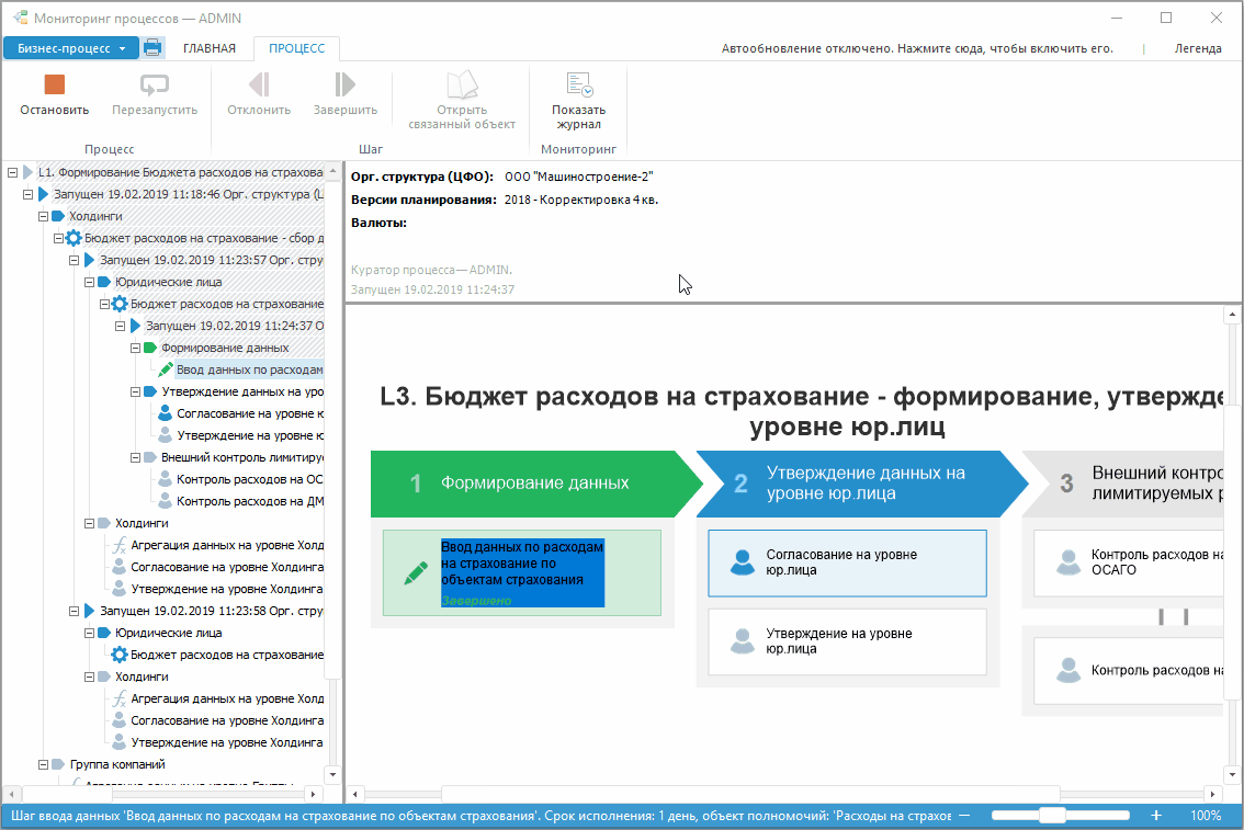Выполнение шагов процесса | Журнал выполнения этапов/шагов процесса