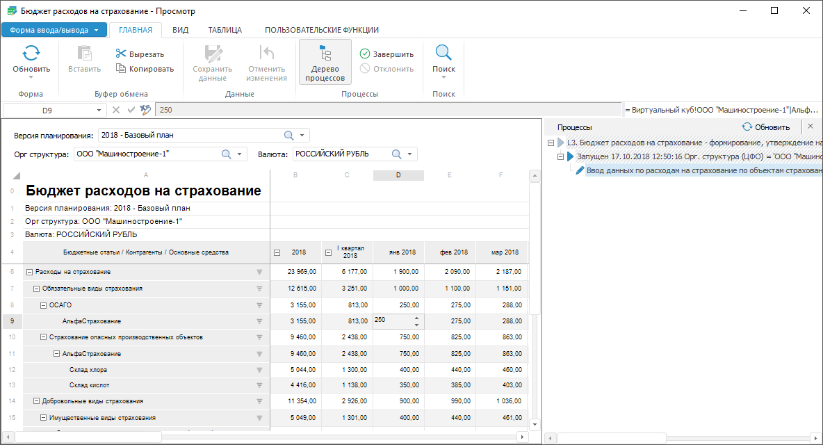 Результат консолидации данных по выбранному периметру консолидации отображается и контролируется в консолидированных бюджетных формах с детализацией по периметру.