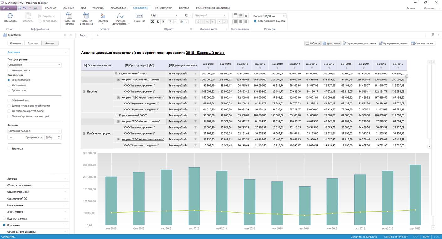 Инструменты аналитической отчётности продукта «Форсайт. Аналитическая платформа» используются для визуализации плановых и бюджетных показателей, сформированных в результате расчета бюджетной модели.