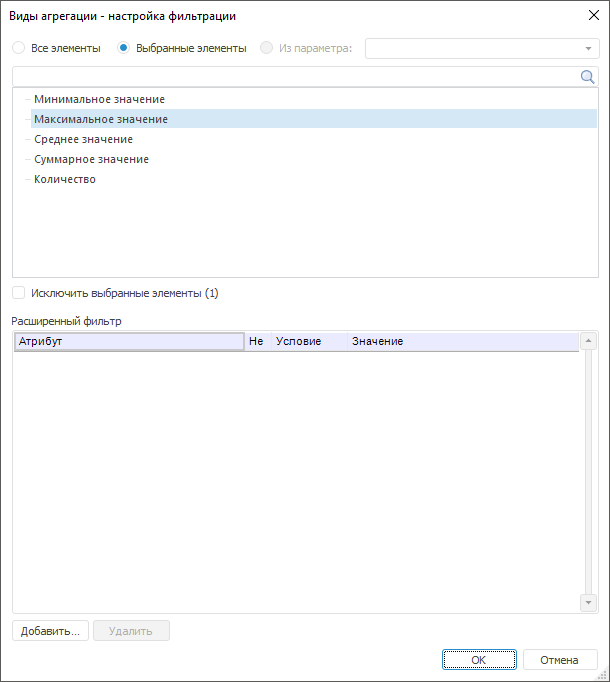 Для выбора элементов измерения, по которым будет рассчитываться блок, используйте диалог «Настройка фильтрации»: