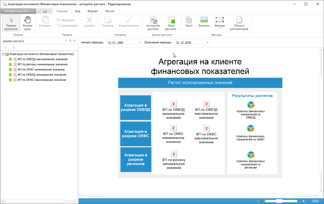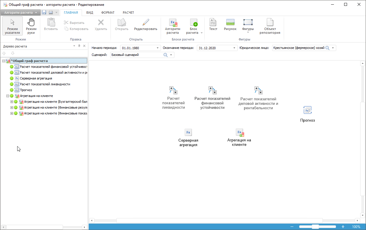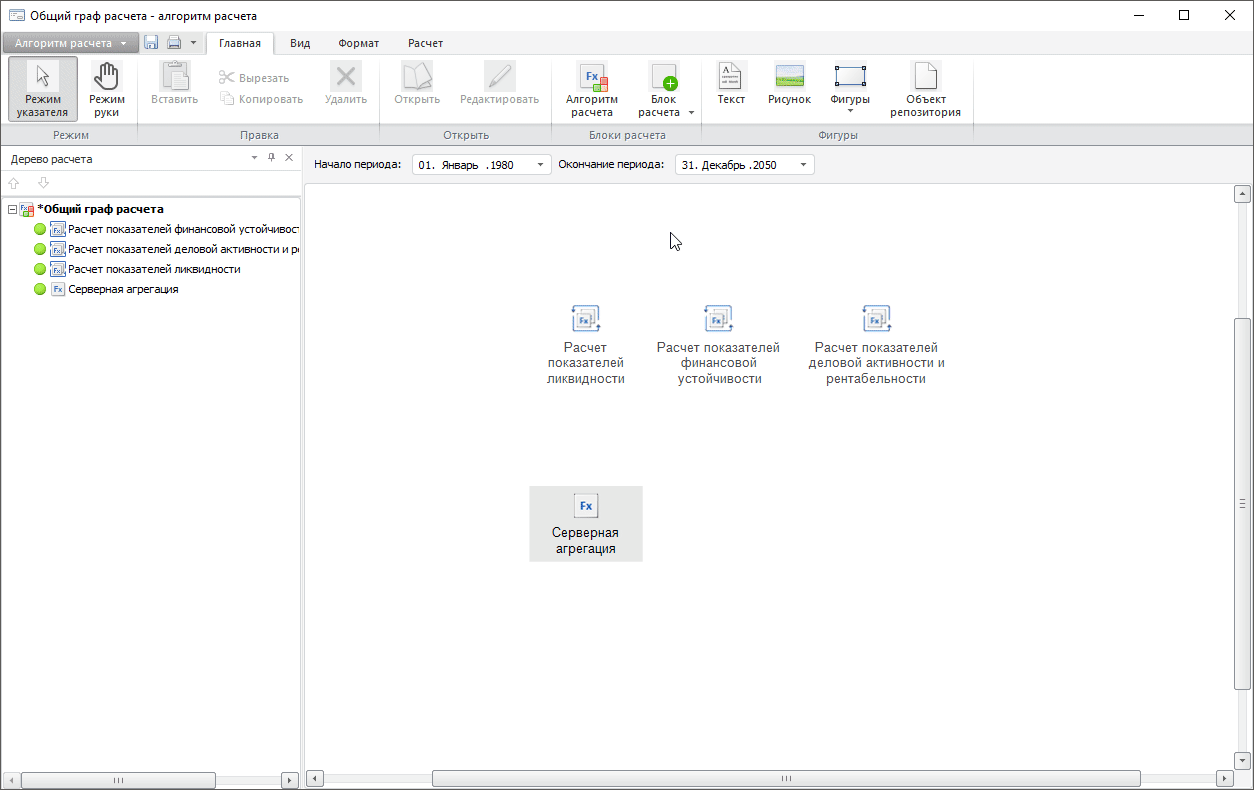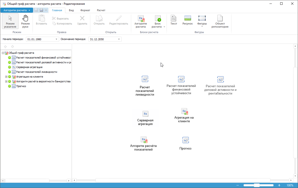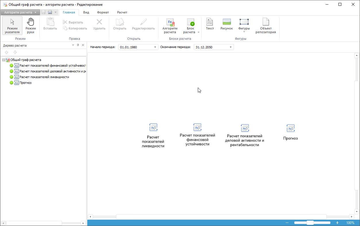 Построение алгоритма расчёта выполняется в настольном приложении.