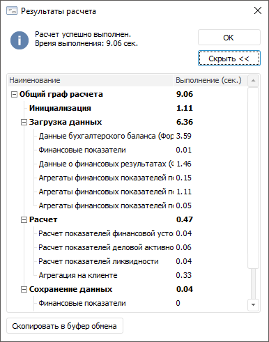 После завершения расчёта будет отображен диалог с результатами. Если при расчёте возникла ошибка, то будет отображено соответствующее сообщение.
