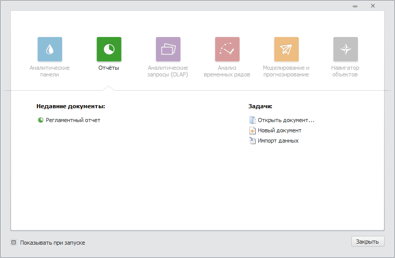 После выполнения одного из действий будет открыт интерфейс выбранного инструмента «Форсайт. Аналитическая платформа» или навигатора объектов.