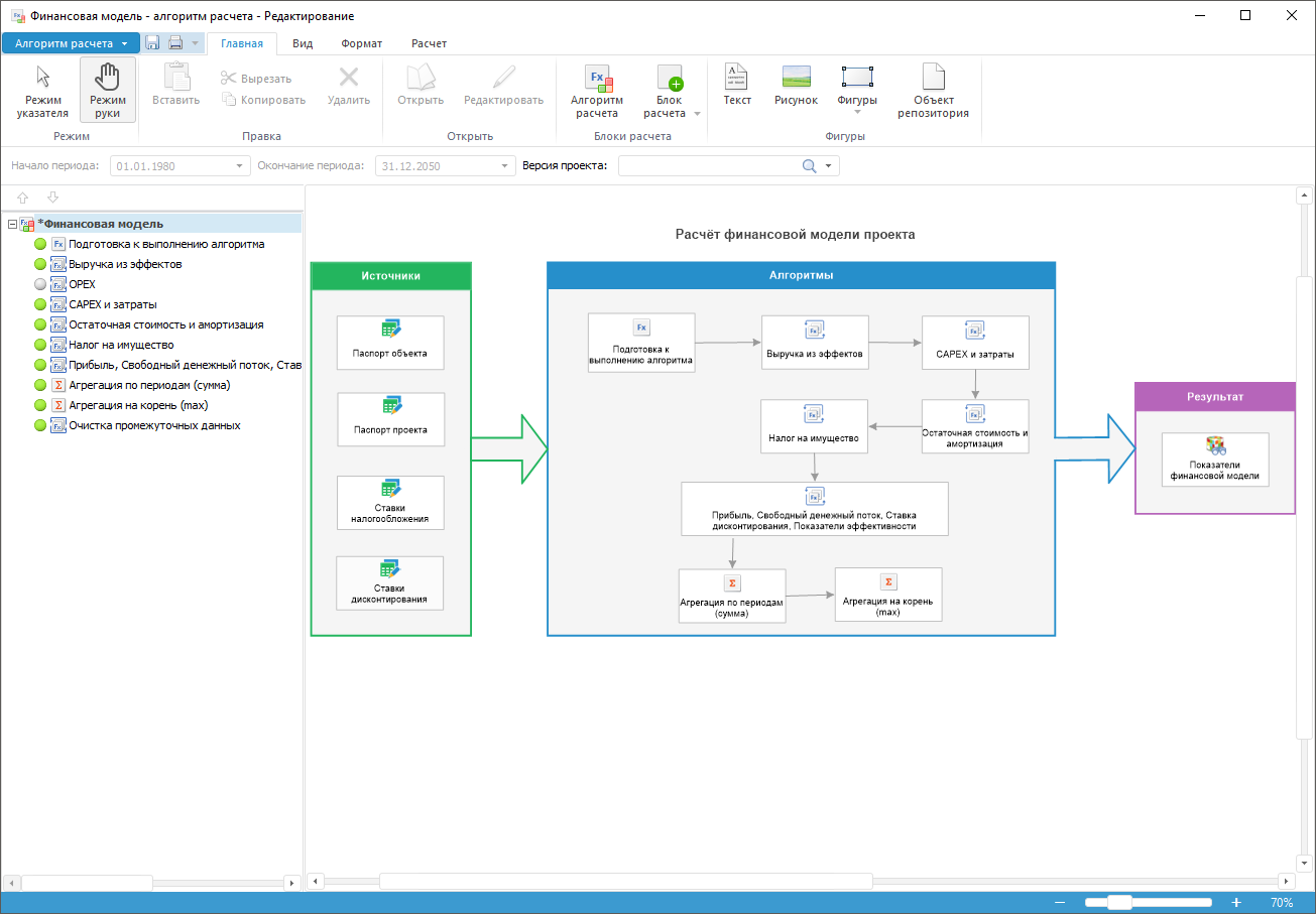 создание методик расчётов в виде многоуровневых графов на едином графическом пространстве;