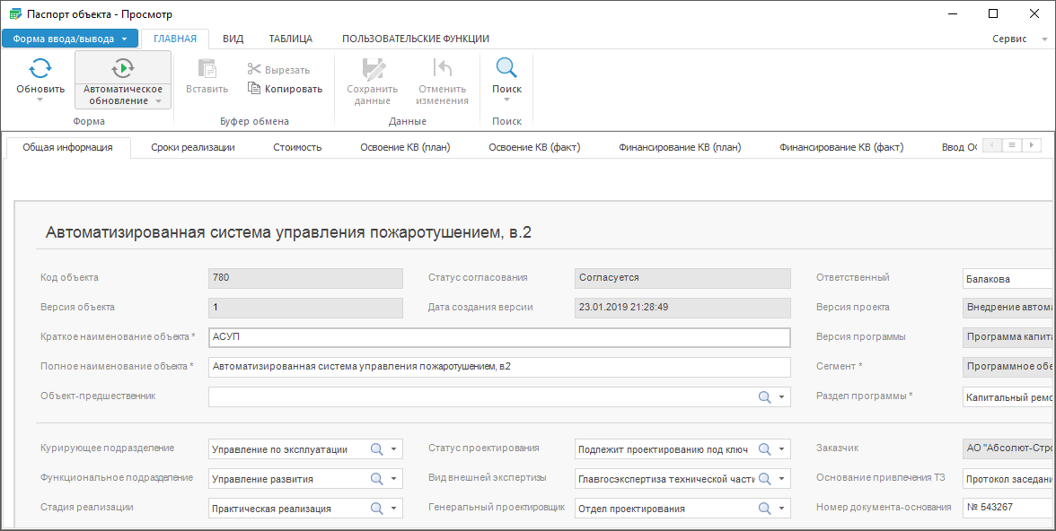 Паспорт объекта инвестиций используется для ввода и согласования данных при создании нового объекта инвестиций, просмотра и редактирования информации по существующим версиям объектов.