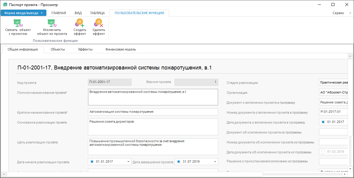 Паспорт инвестиционного проекта используется для ввода и согласования данных при создании нового инвестиционного проекта, просмотра и редактирования информации по получаемым эффектам от реализации включённых в него объектов инвестиций.