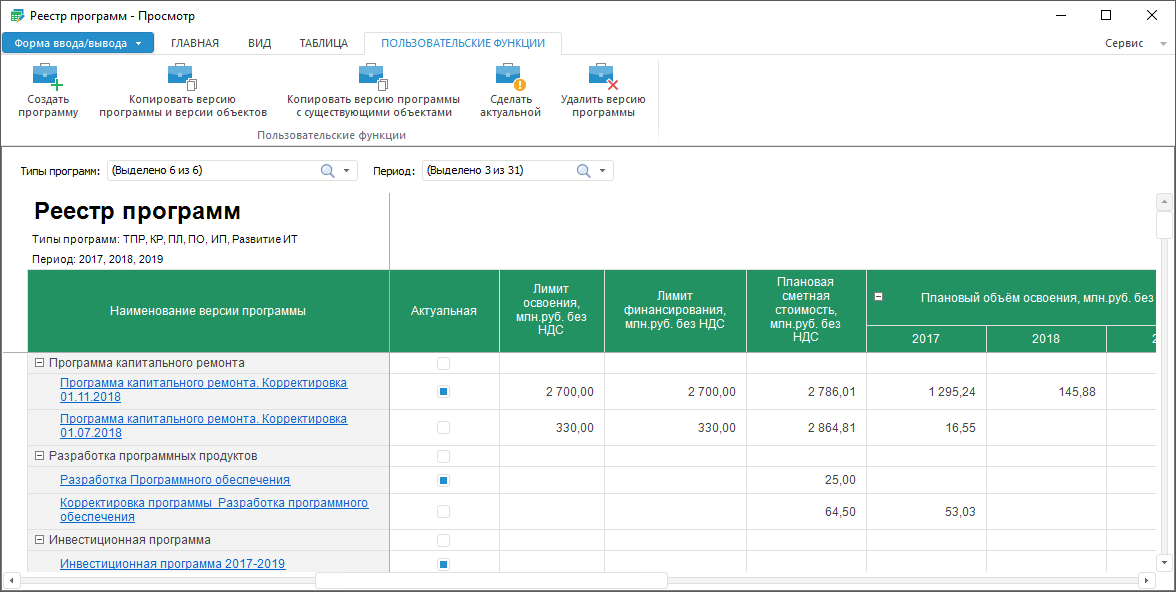 Реестр инвестиционных программ используется для ведения программ и их версий программ в процессе инициализации и формирования лимитов программы.