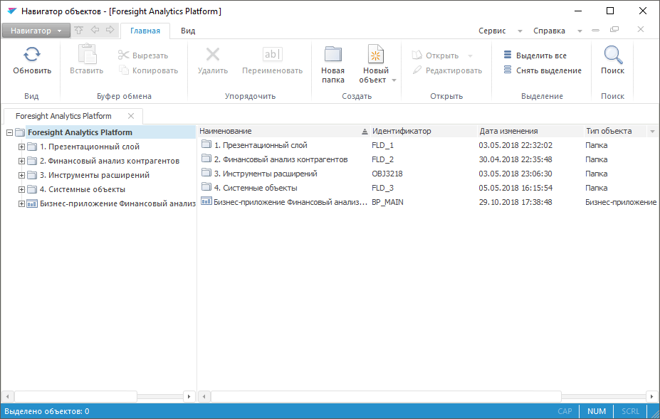 Системные объекты. В папке содержатся готовые расширения и их ресурсы, созданные в процессе выполнения этапов бизнес-кейса по анализу финансовой деятельности организации, а также по разработке бизнес-приложения: