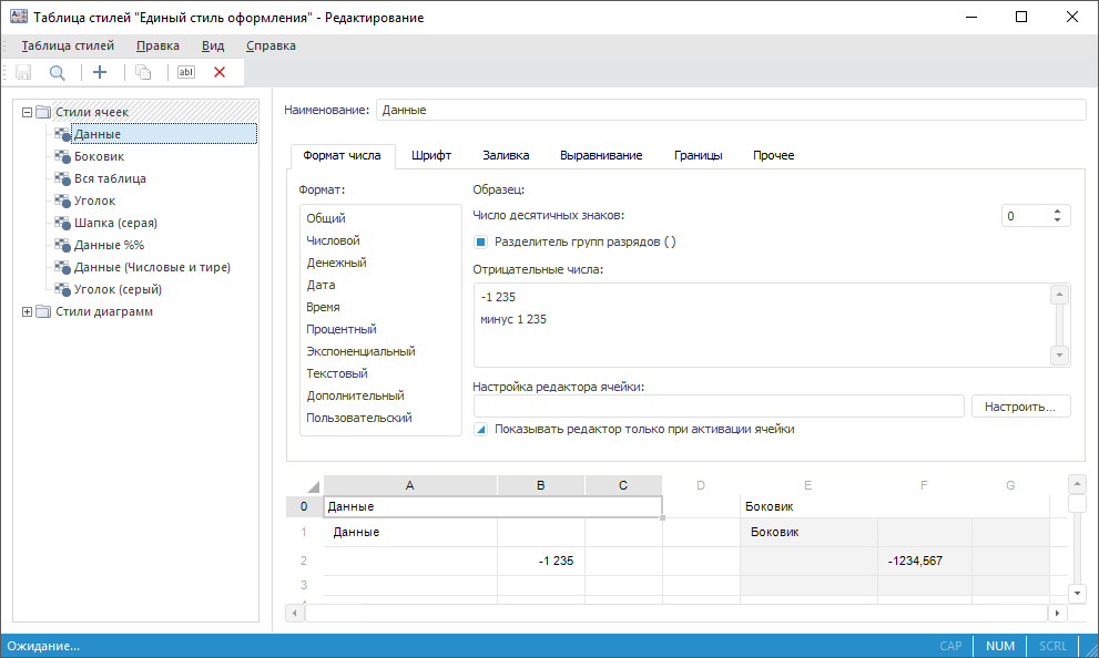 Объект «Первичная и аналитическая отчетность» содержит пример подключаемой таблицы стилей, которая позволяет производить настройку формата табличных данных и визуализаторов.