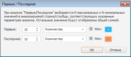 Распределение задается по количеству, процентам или сумме, для первых или последних элементов: