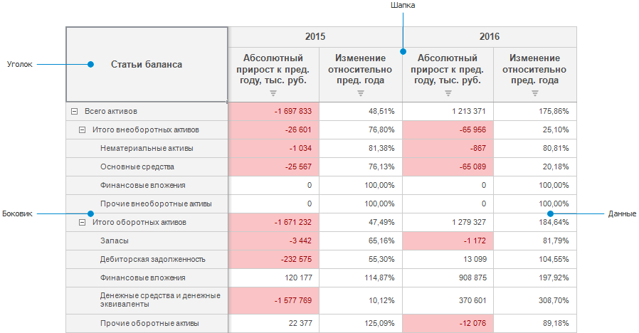 Боковик. Элемент таблицы, который отображает наименования элементов измерения, размещенного по строкам;