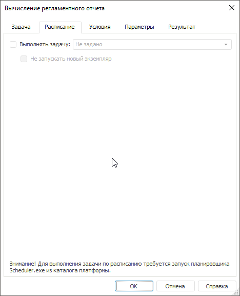 Примечание. Настройка расписания, условия и результата опциональна и может быть произведена в зависимости от требований задачи.