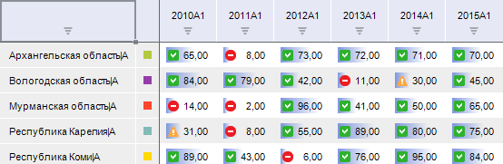 Настройки условного форматирования разных типов (цветовые схемы, цветовые шкалы, значки, гистограммы) накладываются друг на друга.