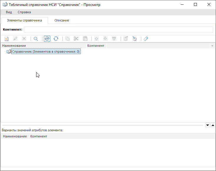Для создания элемента на вкладке «Элементы справочника» выберите элемент-родитель в дереве элементов, затем: