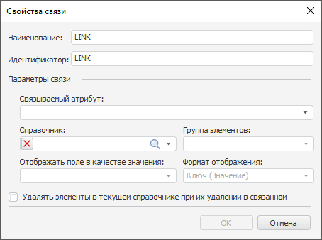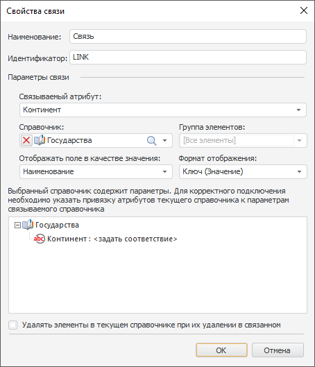 Примечание. При использовании СУБД HP Vertica при создании связей не поддерживается удаление элементов в текущем справочнике при их удалении в связанном из-за ограничений СУБД.