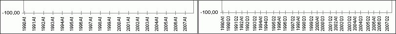 Ниже приведен пример одной и той же шкалы, отображающей иерархические значения, в разных режимах построения. Слева представлена шкала, содержащая данные только годовой динамики. Шкала построена в автоматическом режиме. Справа шкала построена в пользовательском режиме: она отображает годовую и квартальную динамики.