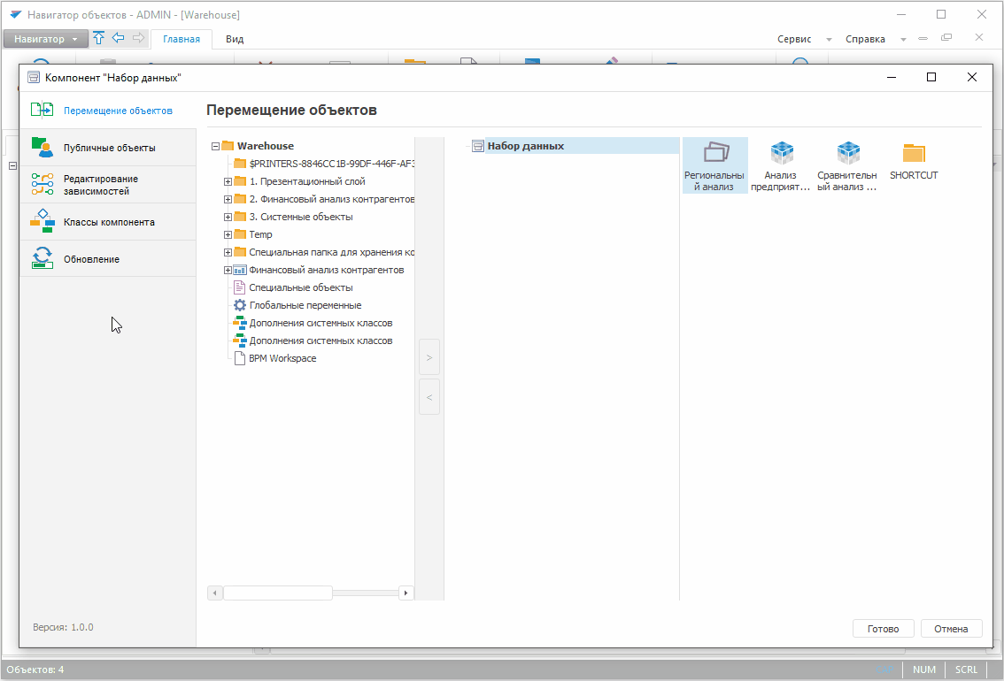 Работа с компонентом выполняется в настольном приложении продукта «Форсайт. Аналитическая платформа».