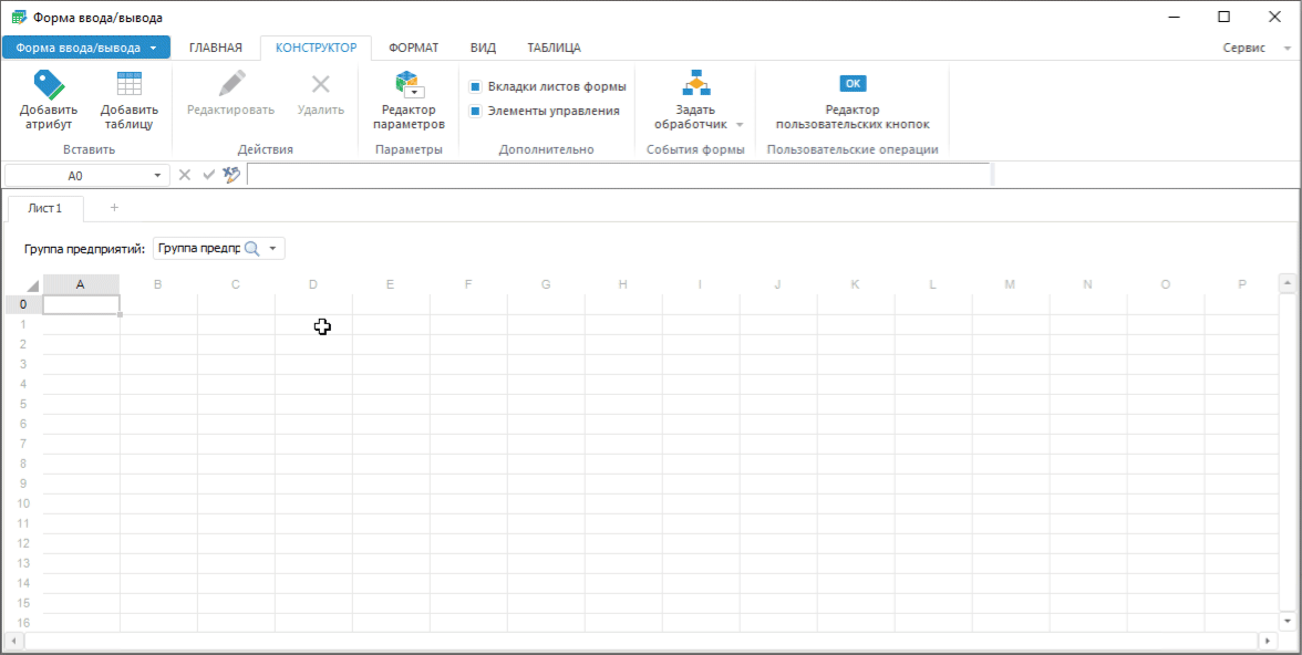 вкладки «Конструктор» ленты инструментов:
