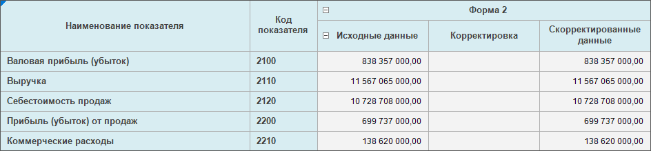 остальных ячеек показателей редактирование недоступно, в ячейках отображается