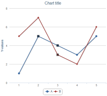 Для выполнения примера подключите библиотеки jquery.js и highcharts.src.js. Далее приведен Java Script код для размещения на html-странице линейной диаграммы с возможностью выделения точек:
