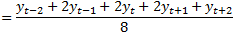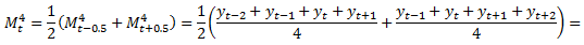 Расчет скользящего среднего по четырем точкам свелся к расчету по пяти точкам с набором весов (1, 2, 2, 2, 1). Описанный прием расчета скользящего среднего по четному количеству точек называется центрированием.