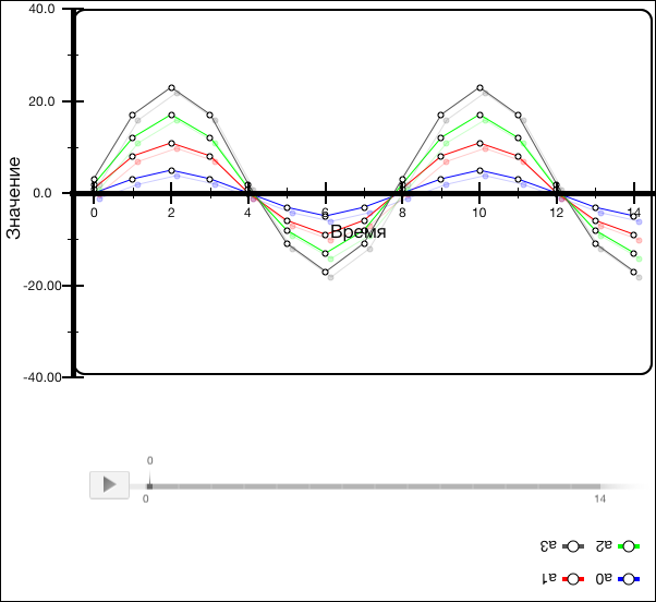 В данном примере реализовано изменение значения цвета, ширины и радиуса скругления границ диаграммы, а также следующих свойств легенды диаграммы: