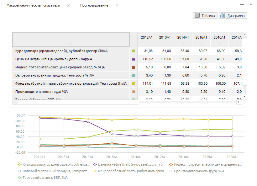 Для временных рядов доступны все операции с объектами, приведенные в разделах «Построение аналитической панели» и «Вставка и настройка отчётов». Также для отчёта доступно: