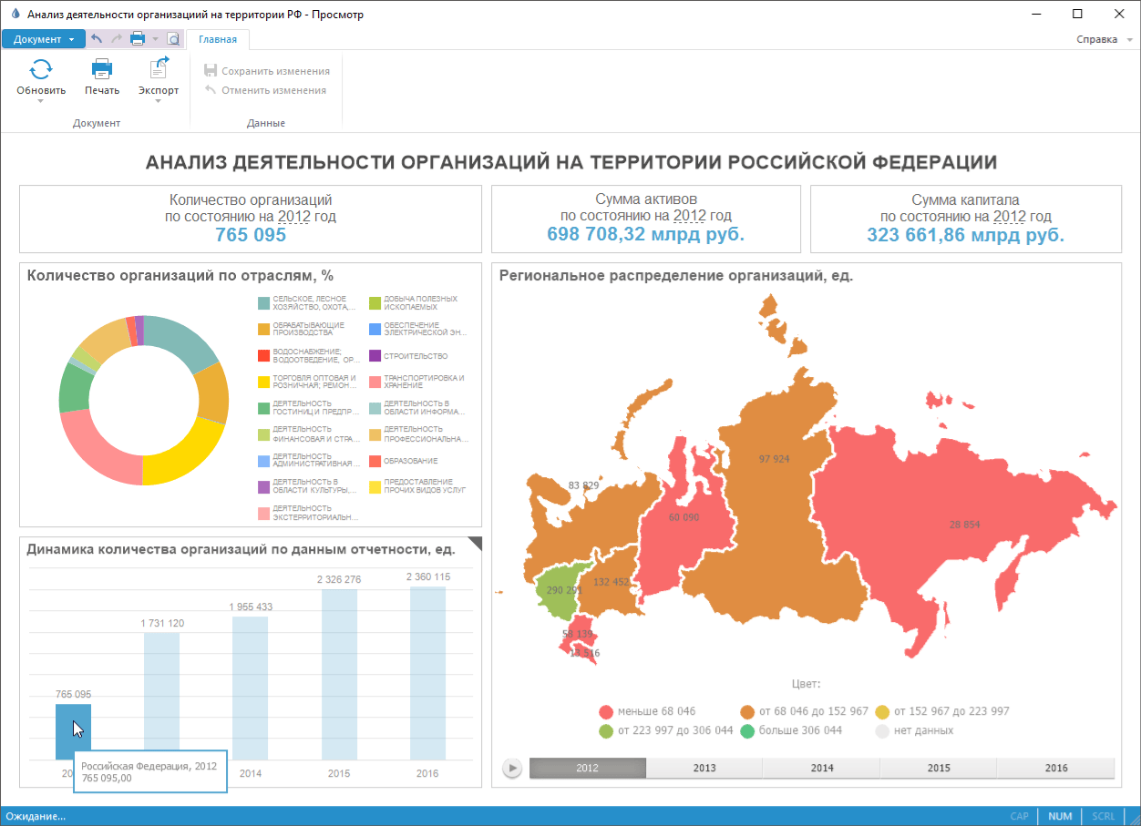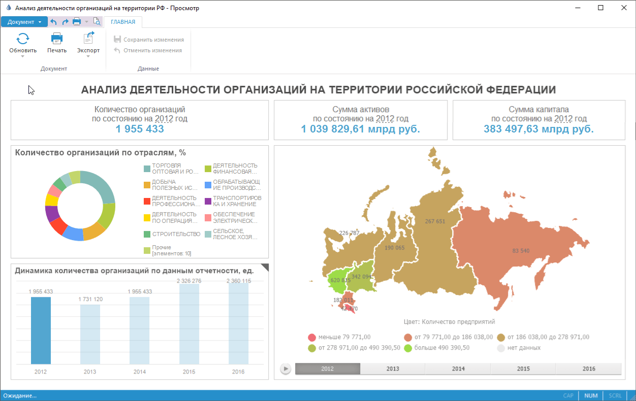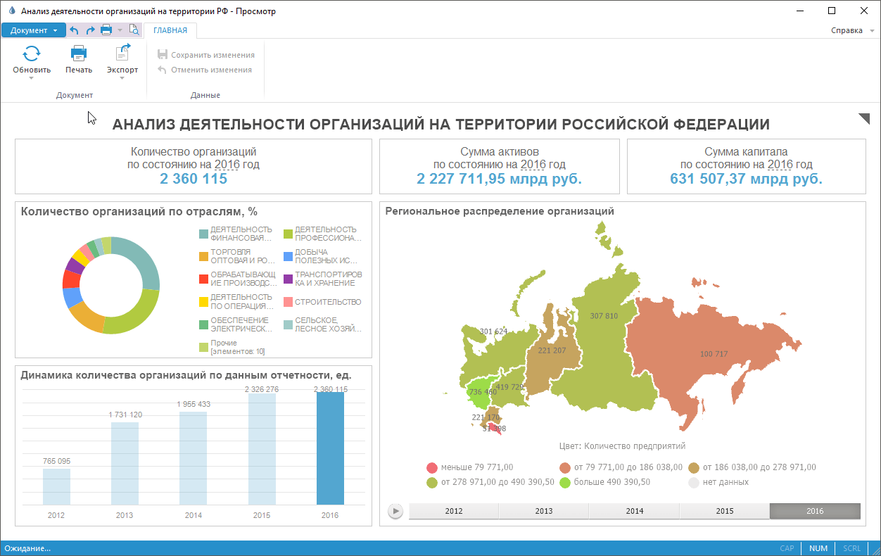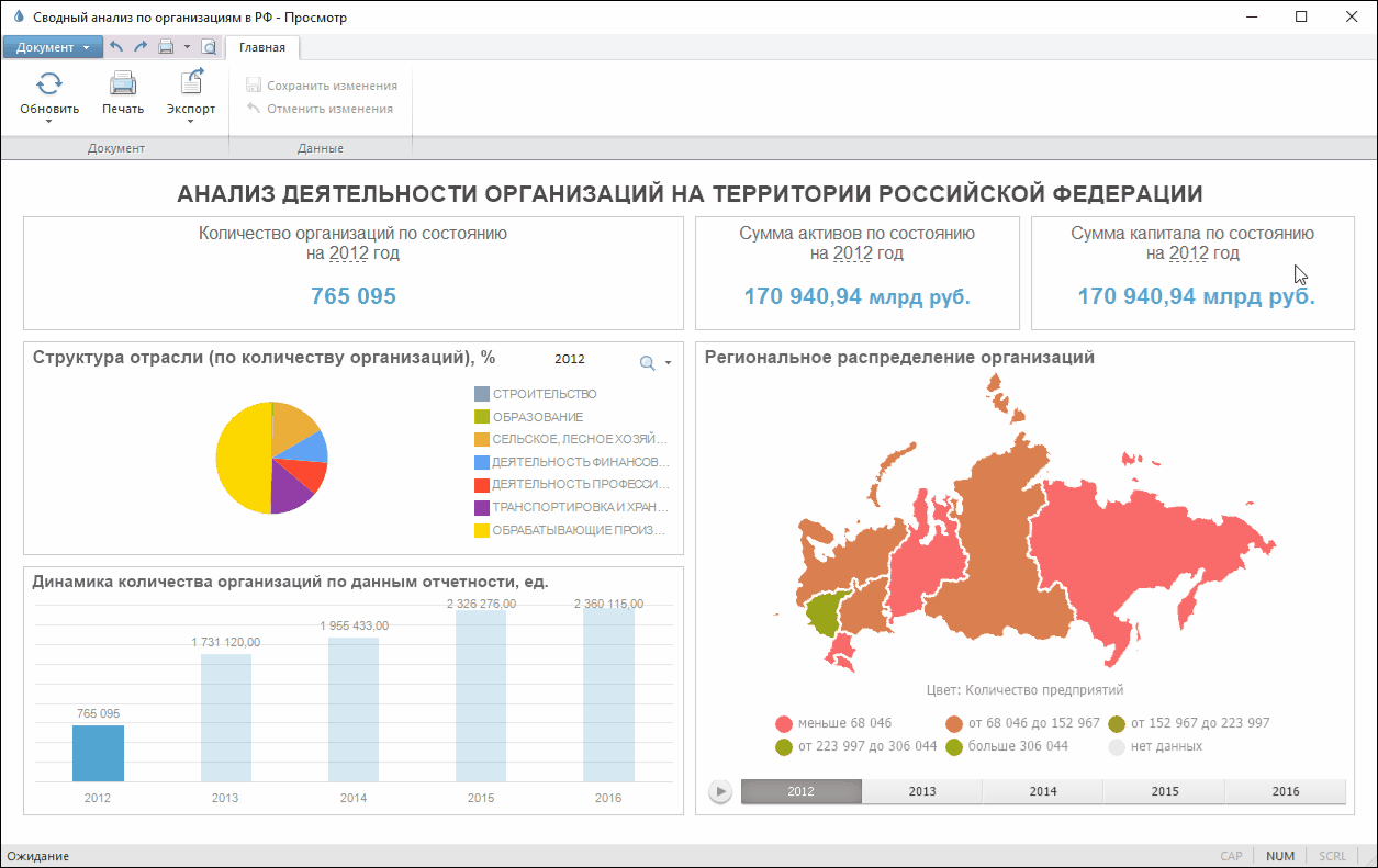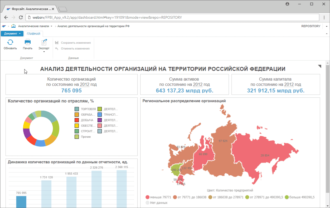 и печать аналитической панели.