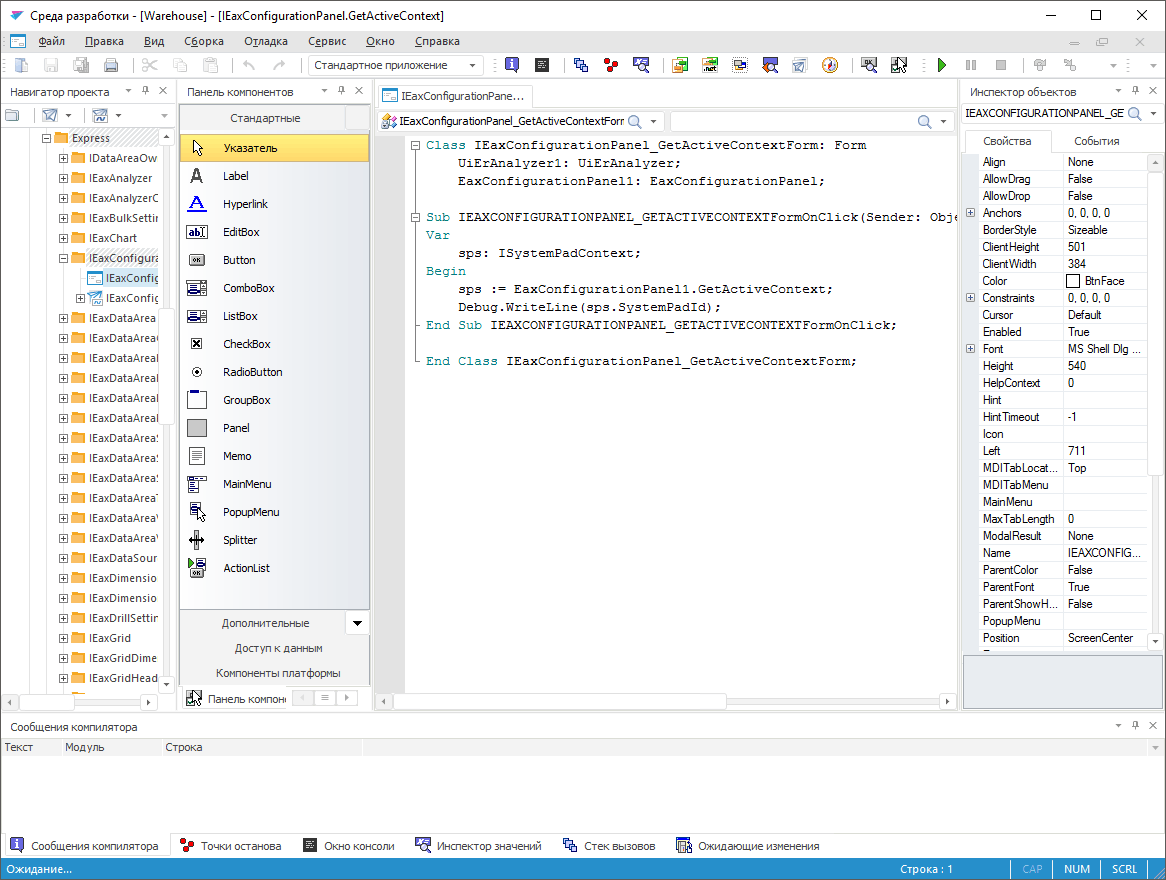 Реализация языка Fore также позволяет создавать код, который может задействовать некоторые функции самой среды разработки в прикладном приложении. Более подробно читайте описание команд, используемых для работы с объектами среды разработки.