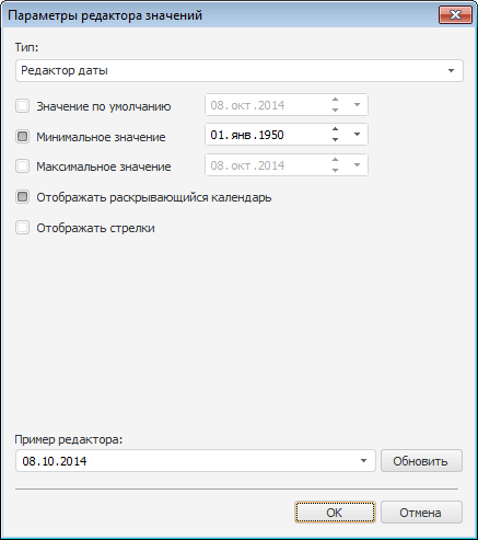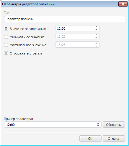 Редакторы значений используются для удобного ввода/выбора значений: