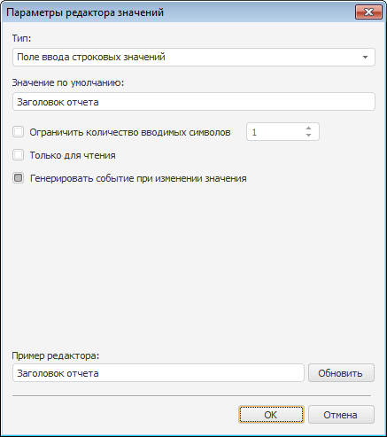 Настройка редактора значений