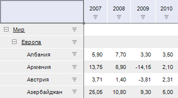 Примечание. Если включено отображение куба с агрегацией по уровням измерения, то при настройке итогов в табличном визуализаторе будет доступен метод расчета «Из источника».