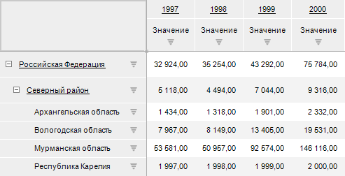 Сохраните все изменения и закройте мастер редактирования куба. Теперь, если открыть куб и в отметку добавить вычисляемый факт, то данные куба будут выглядеть следующим образом: