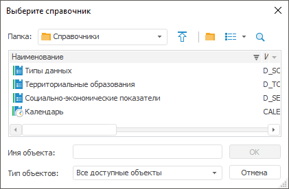 Будет открыто стандартное диалоговое окно выбора справочника: