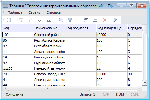 Пример таблицы-справочника: