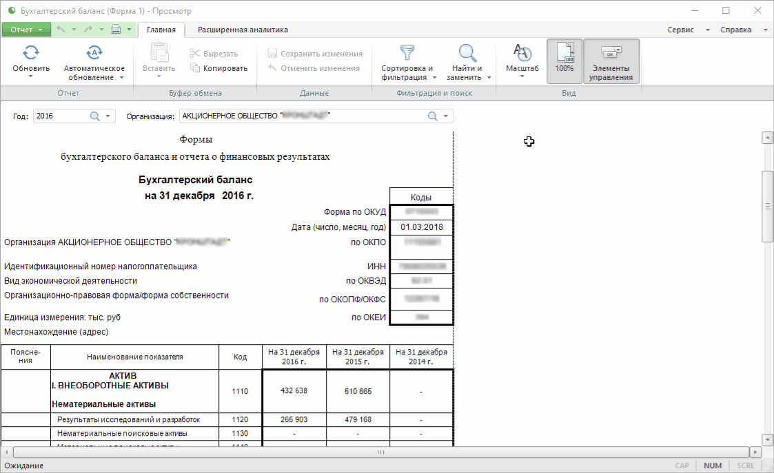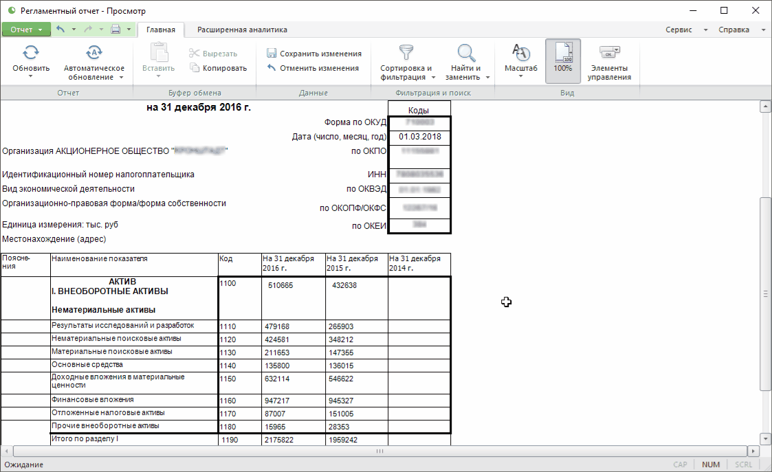 Для работы с готовым отчётом выполните шаги: