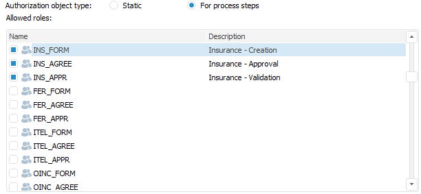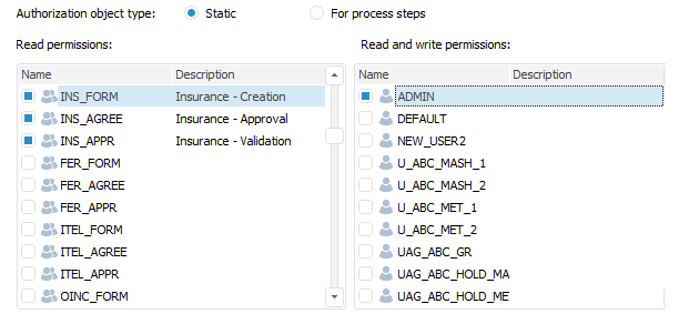 NOTE. The authorization object with dynamic access permissions must be specified on creating process steps.