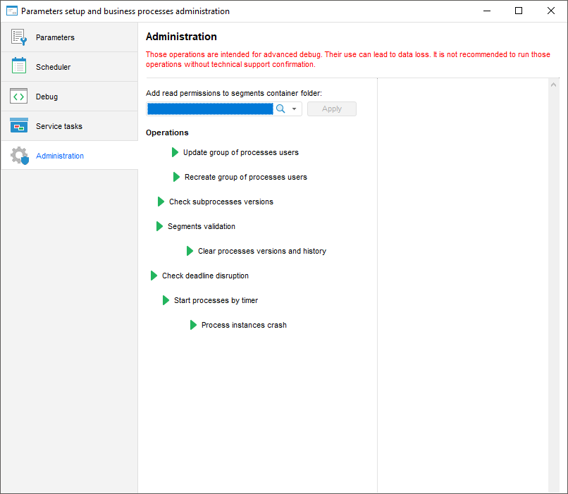 Setting Up Parameters and Administrating Business Processes | Setting Up Business Processes Parameters | Setting Up Business Processes Scheduler | Setting Up Business Processes Debug | Creating Service Tasks for Business Processes