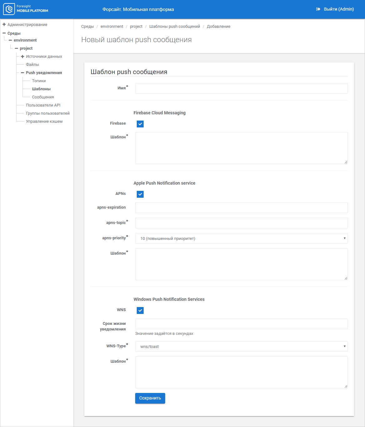 APNs. Select the checkbox next to the used type of OS and fill required boxes.