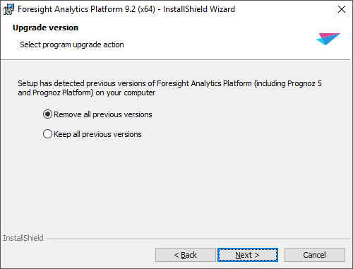 After starting the installer checks if there is an earlier build of Foresight Analytics Platform: