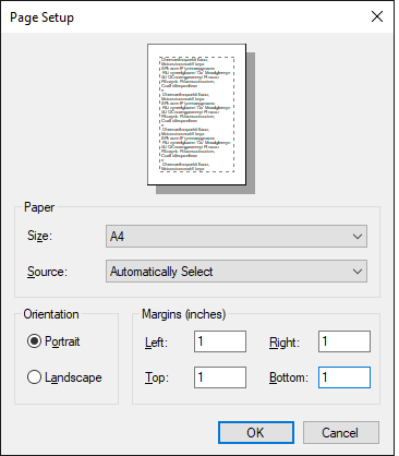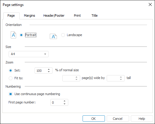 Executing one these operations opens the Page Settings dialog box. The dialog box look depends on the sheet type.