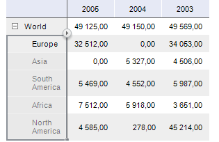Select a range including the cell from the data table heading or sidehead, where hierarchical dimension elements are located. Click the