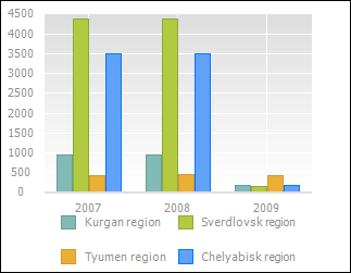 Select the Tyumen Region series and select the Drill Down context menu item. The user will be moved to the child level of the Tyumen Region element, the chart will be rebuilt as follows: