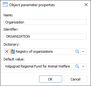 A parameter can be set up in the Object Parameter Properties dialog box: