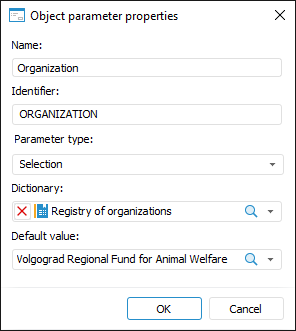 A parameter can be set up in the Object Parameter Properties dialog box: