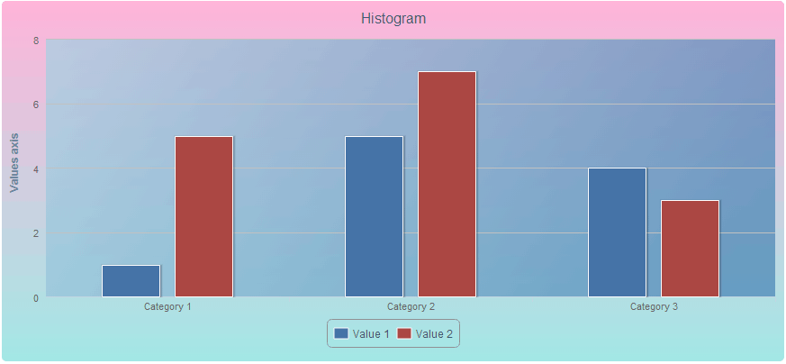HighCharts charts enable the user to set angle and transparency for the linear gradient selected as the chart background or chart plot area background.